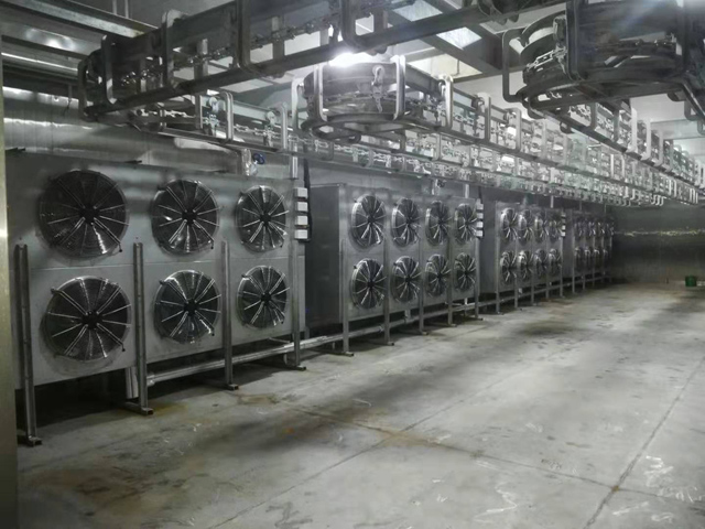 客戶特別要求:70分鐘將25噸常溫屠宰肉冷凍到0~5度