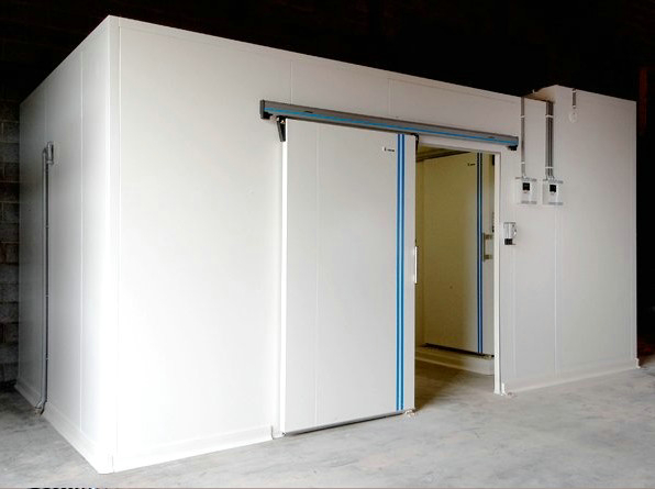 常見的冷庫門有推拉門、電動門、卷閘門、平移門、彈簧門等等,在小型冷庫的庫門設(shè)計規(guī)劃時要滿足客戶使用需求,更要根據(jù)現(xiàn)場能夠使用的通道寬度來進(jìn)行合理的設(shè)置。例如,貨物運輸?shù)某叽缬兴拗频脑?,那建議使用能夠方便大設(shè)備、大貨物出入自由的平移門。另外,冷庫的門和門框之間一定會存在縫隙,在內(nèi)外溫差高達(dá)10 ℃左右時,空氣中的水分會凝結(jié)在門框的表面,甚至是直接流到庫內(nèi)的地面。因此,在庫門的周邊應(yīng)該安裝發(fā)熱線(加熱絲),避免在潮濕天氣時候出現(xiàn)凝露現(xiàn)象。