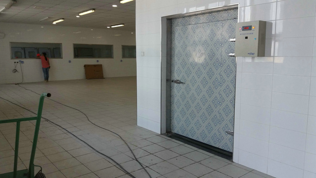 根據(jù)蔬菜批發(fā)商的貯藏及使用需求,該蔬菜保鮮冷庫尺寸為:長54m*寬15m*高4m,總面積為810平米/容積為3240立方米,冷庫分九間,預(yù)計(jì)可儲(chǔ)存各種蔬菜600-650噸左右。然后按照0~5度的儲(chǔ)存標(biāo)準(zhǔn)來建造,庫板配的100mm聚氨脂保溫板,制冷機(jī)組配備了九套12HP箱式頂出風(fēng)風(fēng)冷機(jī)組(含冷凝器、電磁閥等),冷風(fēng)機(jī)為DL100系列冷風(fēng)機(jī)(9臺(tái))。