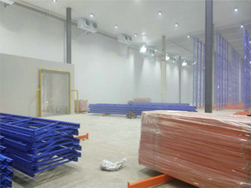 冷庫尺寸:長40m*寬20m*高3.8m,總面積為800平米/容積為3040立方米,該冷庫共分為三間,五面體,溫度:0~5℃;