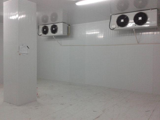 根據(jù)自貢客戶貯藏使用需求,擬建一個(gè)80平米,高3.6米酒樓餐飲廚房雙溫冷庫,分別為0-5℃保鮮庫,-18℃冷凍庫,大概可以存放60噸的蔬菜水果和70-75噸的肉類制品。該酒樓餐飲廚房冷庫庫板配120mm聚氨脂保溫板,冷庫制冷系統(tǒng)配美國艾默生谷輪渦旋式頂出風(fēng)制冷壓縮機(jī)組,冷風(fēng)機(jī)為凱迪系列冷風(fēng)機(jī)。