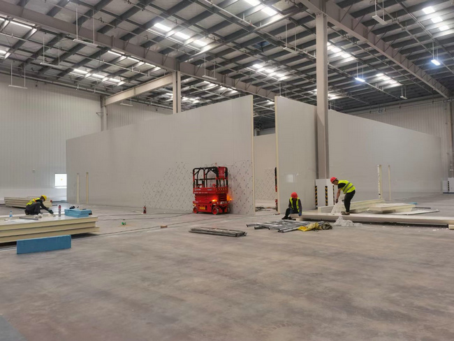 庫房保溫:冷庫保溫材料采用的是100㎜聚氨酯雙面彩鋼板保溫庫板,鋼板厚度0.5,芯才密度≥40(±2)kg/m³,阻燃級別B1。