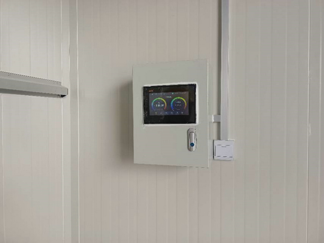 電氣系統(tǒng):庫(kù)內(nèi)照明選用的飛利浦LED冷庫(kù)專用防潮、防爆庫(kù)燈,外形美觀、照明度好??刂葡到y(tǒng)采用蘇州精創(chuàng)微電腦溫度控制器,帶LTC-100大屏幕顯示控制器,并且具備溫濕度報(bào)警,數(shù)據(jù)記錄,手機(jī)客戶端監(jiān)控等功能。