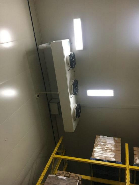 電氣系統(tǒng):庫(kù)內(nèi)照明選用的飛利浦LED冷庫(kù)專用防潮、防爆庫(kù)燈,外形美觀、照明度好??刂葡到y(tǒng)采用蘇州精創(chuàng)微電腦溫度控制器,帶LTC-100大屏幕顯示控制器,并且具備溫濕度報(bào)警,數(shù)據(jù)記錄,手機(jī)客戶端監(jiān)控等功能。