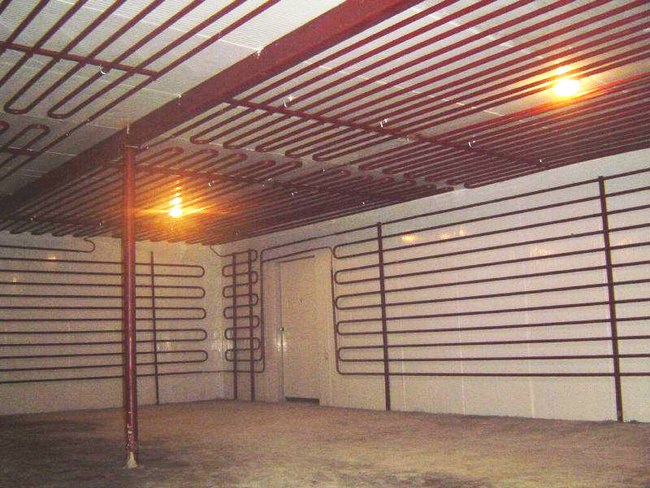 為了在冬季保持羊肉新鮮,羊肉冷庫(kù)可以及時(shí)儲(chǔ)存大量羊肉。屠宰后,必須用無(wú)菌水清洗羊肉胴體,放血后的羊肉胴體必須在1小時(shí)內(nèi)送到羊肉保鮮冷藏、冷卻和排酸車間。羊肉保鮮冷庫(kù)采用快速冷卻法冷卻排酸。羊肉冷卻排酸冷庫(kù)冷卻室冷卻風(fēng)機(jī)蒸發(fā)溫度-10℃,冷卻風(fēng)速2-4m/s,冷卻能耗功率250W/M3。羊肉保鮮冷庫(kù)的冷卻室溫度為0-2℃,掛肉區(qū)之間留有50cm的距離。